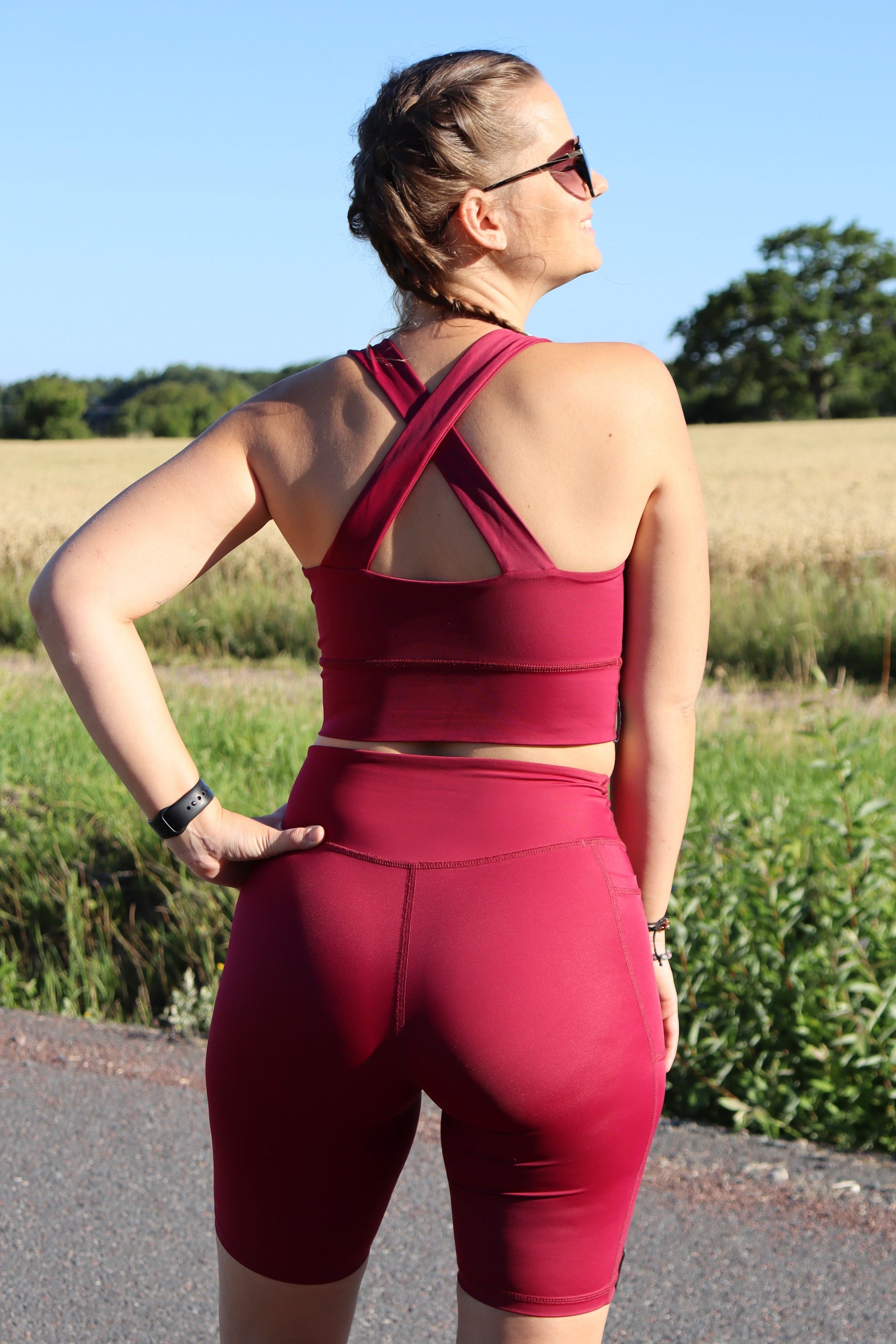 Bordeaux color, high-waisted with pocket for phone, keys etc. Available with or without pocket.
