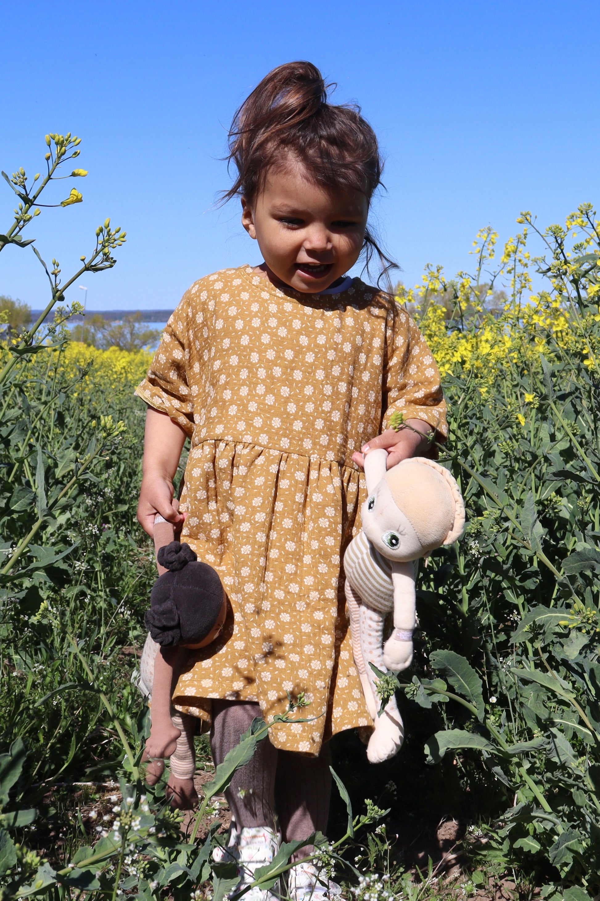 Tyget är GOTS-certifierat och tillverkat i Europa. Denna klänning är väldigt mjuk och följsam och har en ledig passform.