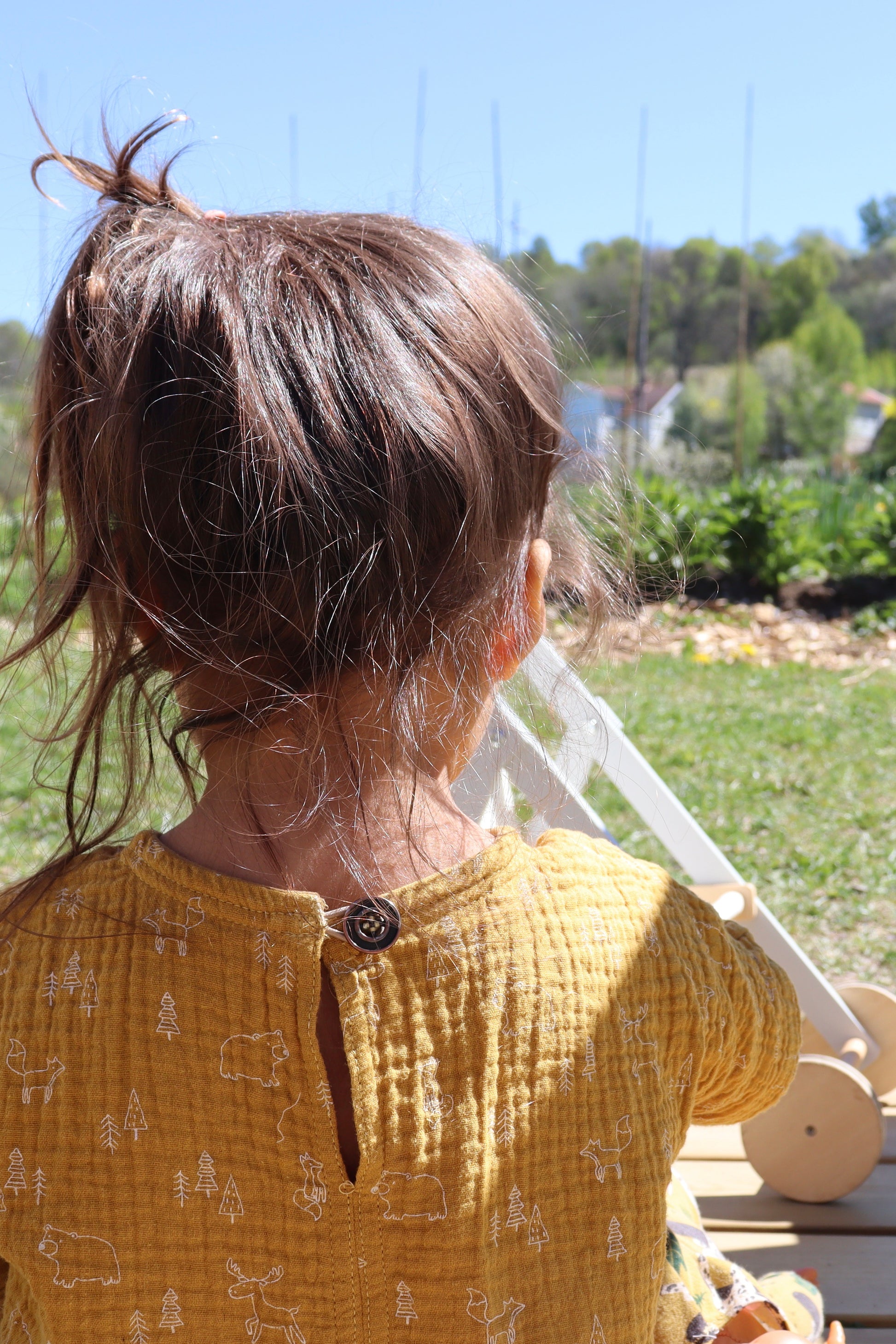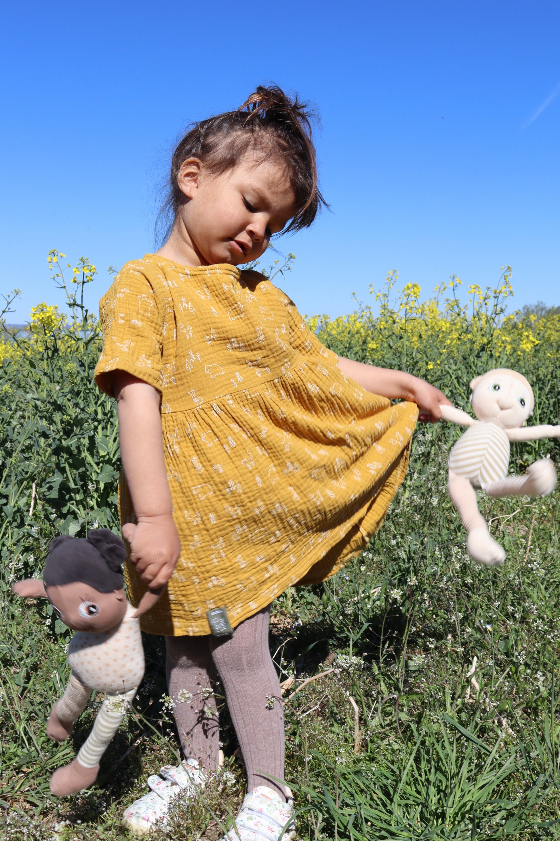 Tyget är GOTS-certifierat och tillverkat i Europa. Denna klänning är väldigt mjuk och följsam och har en ledig passform.