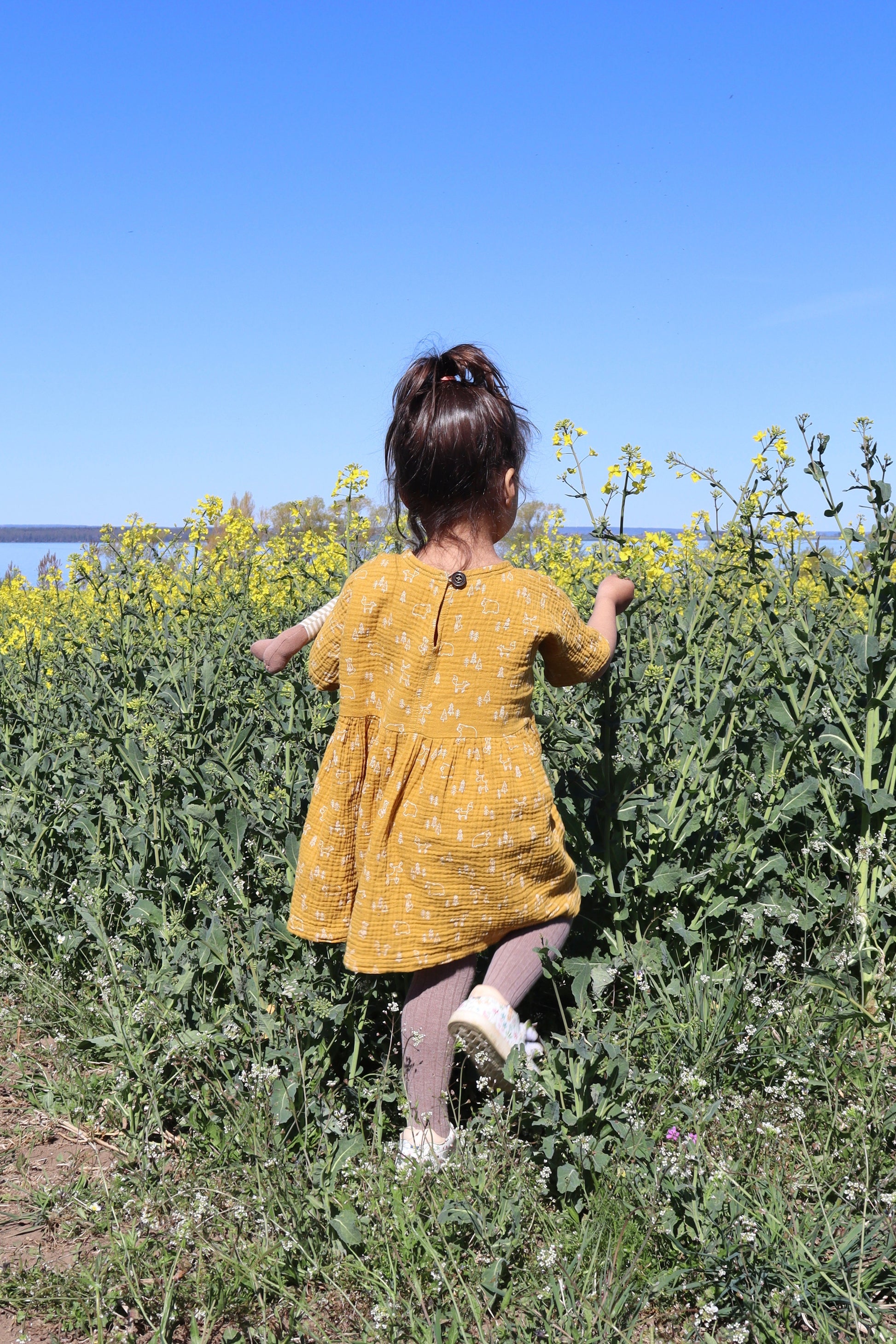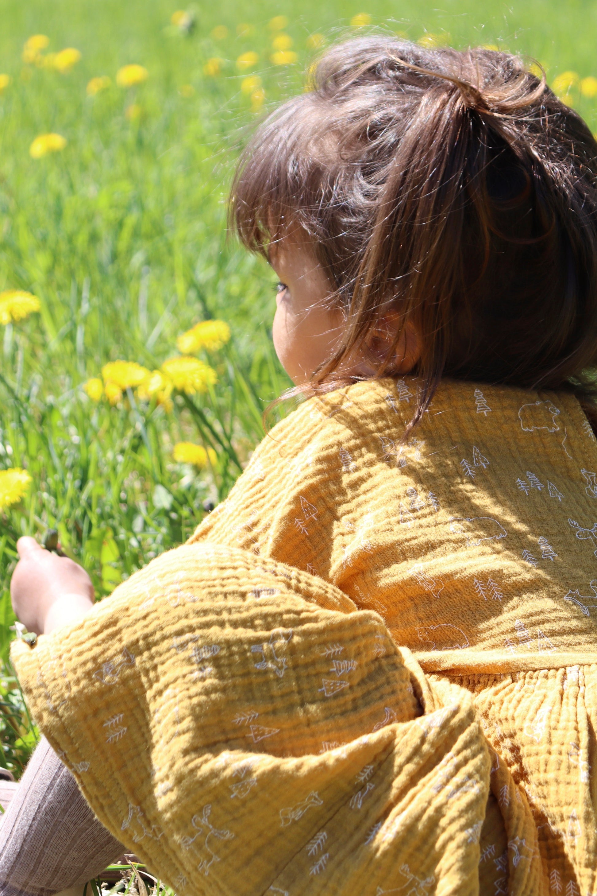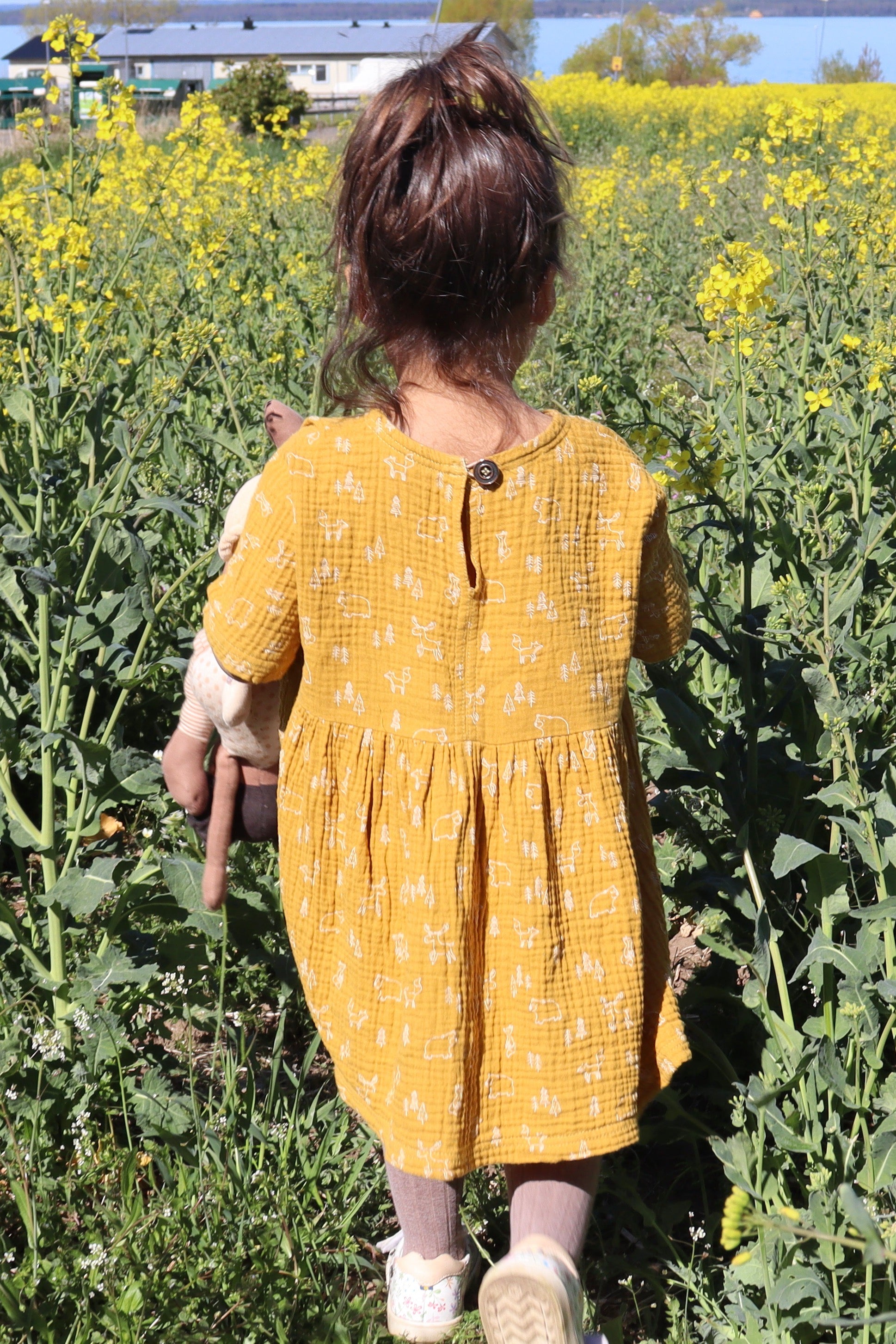Ekologisk Oversized Sommarklänning - Senapsgul med djur