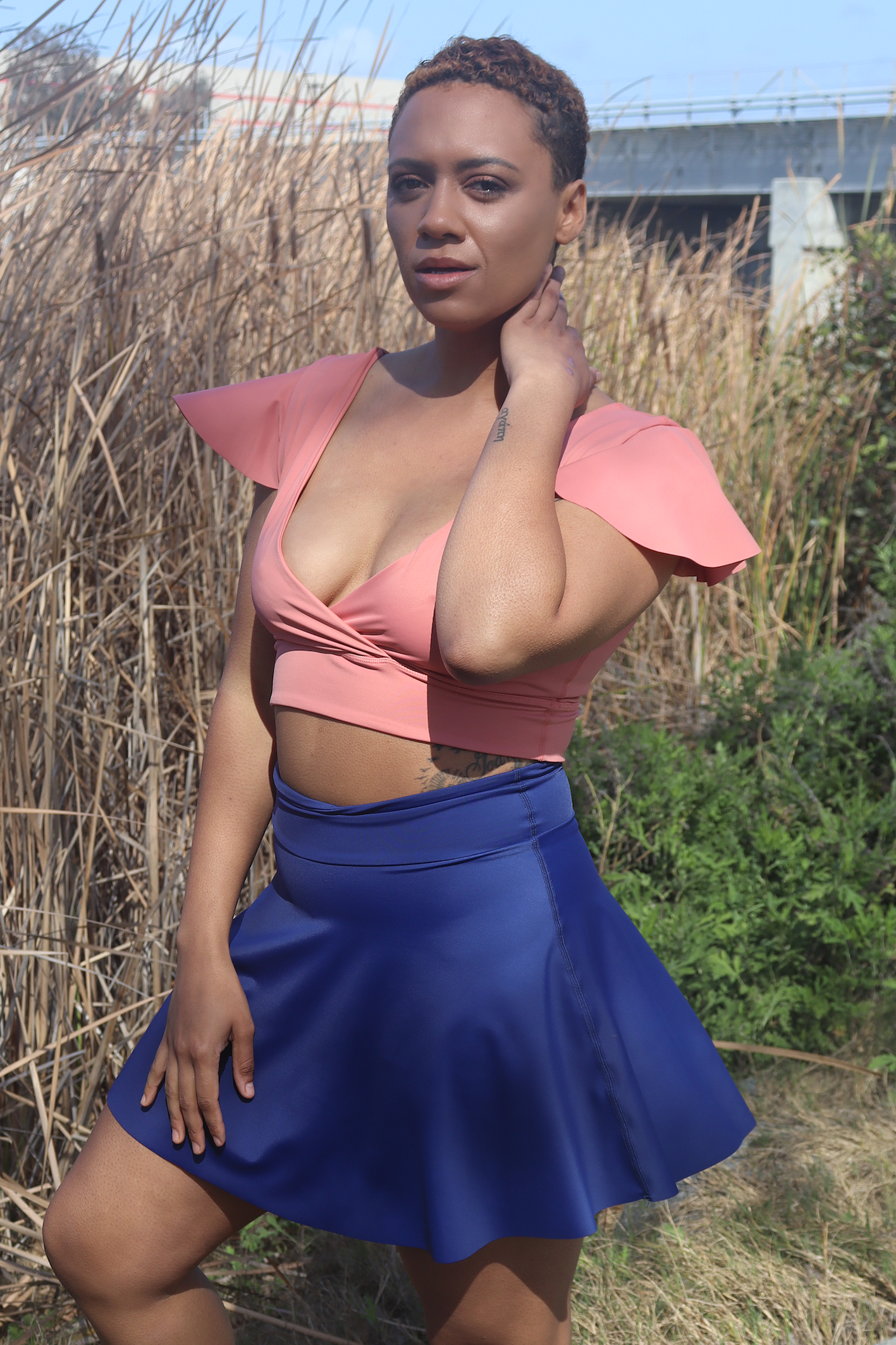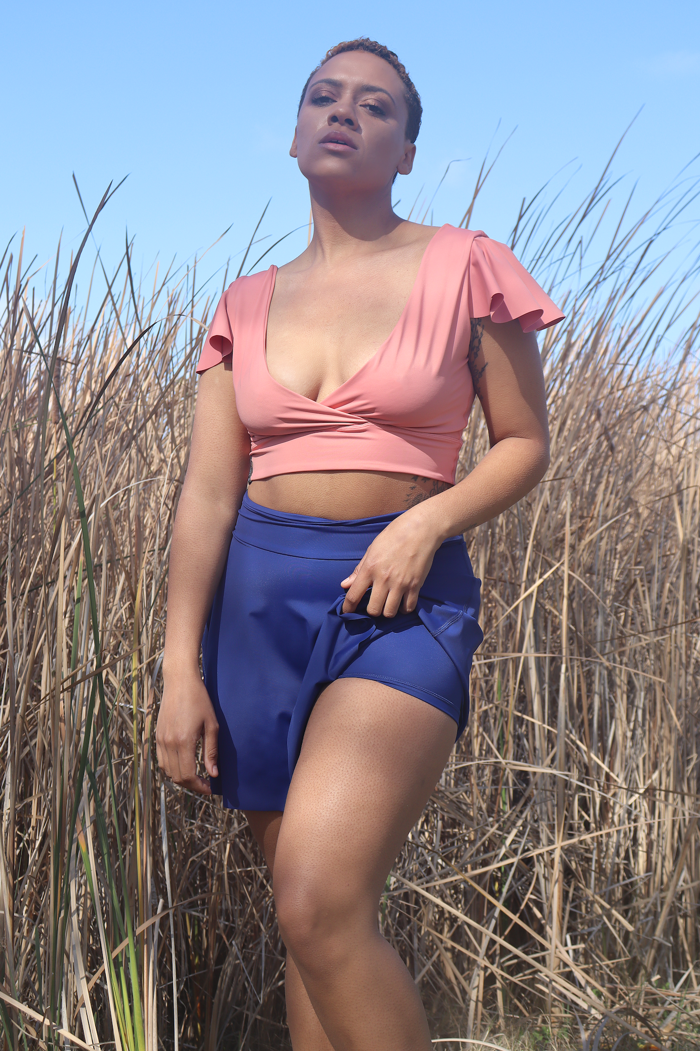 Denna kjol har ett par fastsydda innershorts i samma marinblått tyg, detta så du kan röra dig helt utan begränsningar.